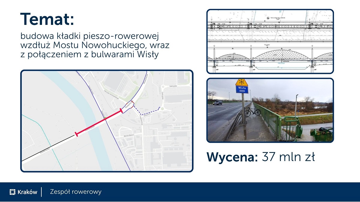 Warto spojrzeć na tę dyskusję także przez pryzmat bardzo konkretnych planów inwestycyjnych, które Kraków ma dziś na stole. Sam wycinek najbliższych zadań przygotowywanych w ramach Programu Budowy Dróg Rowerowych to około 100, 5 mln zł dla szacowanych robót budowlanych. W tej puli mieszczą się m.in. przejazdy rowerowe na ul. Nowohuckiej i ul. Półłanki, połączenie rowerowe przy SKA Podgórze, przejazdy na skrzyżowaniu Brożka–Lipińskiego, droga dla rowerów wzdłuż lewego wału Wisły do Lasku Mogilskiego, kładka Lotnicza–Grunwaldzka, tunelowy przejazd pod ul. Ofiar Dąbia, rozbudowa układu Lotnicza–Raciborskiego z połączeniem pieszo-rowerowym oraz kładka pieszo-rowerowa wzdłuż Mostu Nowohuckiego.