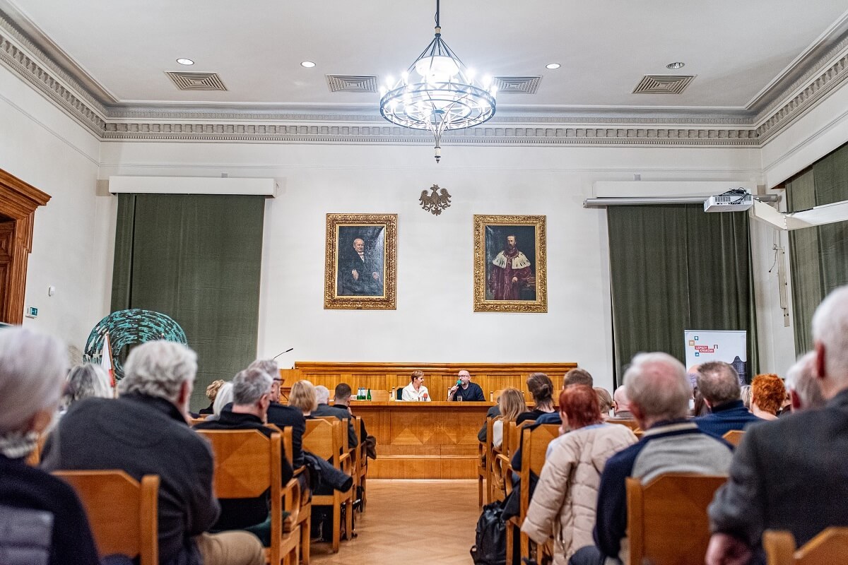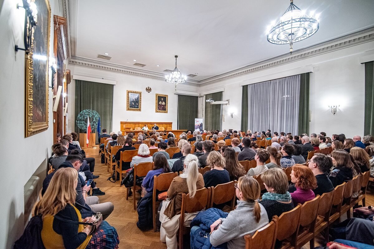 11 lutego sala Polskiej Akademii Umiejętności wypełniła się po brzegi. Gościem spotkania, w autorskim cyklu prof. Dominiki Dudek, był Tomasz Stawiszyński, autor m.in. książek „Co robić przed końcem świata” (2021) i „Ucieczka od bezradności” (2021). – Fukuyama ogłaszał „koniec historii”, dojście ludzkości do pewnego optimum. A potem okazało się, że coś jednak poszło nie tak. Żyjemy w czasie chaosu, o którym zresztą piszesz w jednej ze swoich książek. Żyjemy w lęku, w niepewności, mamy wojny. Co poszło nie tak? – pytała na początku prof. Dudek. Wbrew optymizmowi lat 90-tych i początku XXI wieku, rzeczywistość naszego życia jest o wiele mniej przewidywalna niż przed dwoma dekadami.
